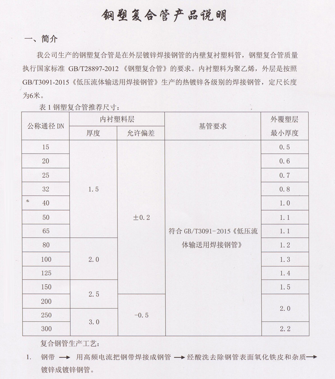 鋼塑復合管 DN80-DN125 2.0/1.5 1.2-1.4